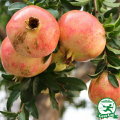 大きさは250g、白実ザクロで珍しい品種です。日本ザクロより2倍以上大きく、光沢がある。生食のほか果実酒にもできます。花は白~オレンジ色の一重咲きで収穫時期は9月下旬~10月中旬。