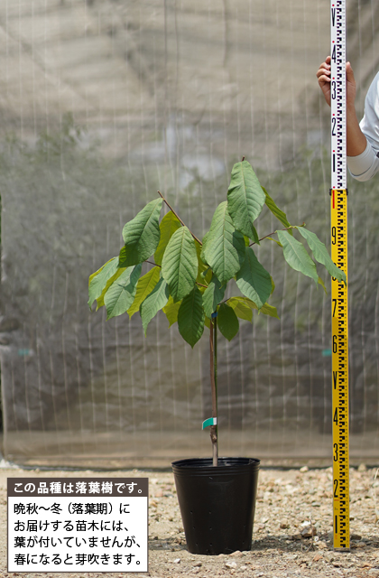 ポット含め高さ1.3m~1.5m前後でビニールポットに仮植してあります。