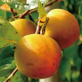 花粉が多く受粉樹に適す!大きさは100~130g、果形は楕円形、肉質はやや硬く品質は中程度です。収穫時期は10月上旬~中旬。雄花が咲く種類で受粉樹として用いられる事が多いようですが、果実も甘百目の小型版と言ったところで、ゴマが入るとなかなか美味しい。1本でなります。作りやすい品種で極豊産性です。他の柿の受粉樹としてもおすすめ!
