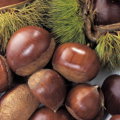 岸根は、山口県美和町が原産の数百年の歴史を持つ晩生種です。果実は30g前後と大きく、粉質で品質がよくまろやかな甘味があります。国の奨励品種として海外でも名前が知られている品種のよいくりです。貯蔵性もよく、加工用としても適しています。