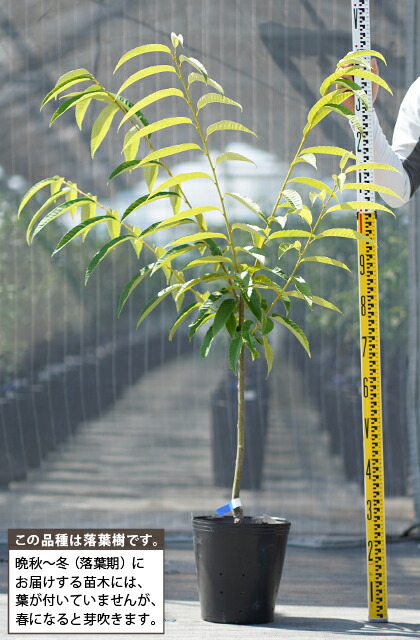ポット含め高さ1.3m~1.5m前後でビニールポットに仮植してあります。