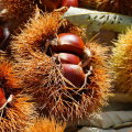 「乙宗(おとむね)」と「大正早生」の交配種で低樹高栽培向きの豊産性早生栗の代表品種です。北海道と沖縄を除く全国各地で栽培されています。栗全体で見ると筑波に次いで多く作られている品種です。サイズは20~25gと大きめで果皮は淡褐色。果実は粉質で粘りがなく加熱するとホクホクになります。甘味と香りは控えめですが、早生種の中では品質に優れています。花粉は主に風で運ばれますが、受粉樹の有効範囲は10~20mです。