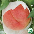 果形は扁円形で果実重は 250~330 gとなり「あかつき」より大果となります。果皮の地色は白色、着色はぼかし状でやや多く、玉揃いも比較的良好で外観は優れています。肉質の粗密はやや密で繊維はやや多い品種です。