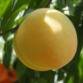 清水白桃は桃の中でもその色白で上品な外見と、緻密で柔らかく、甘くジューシーな極上の桃として「桃の女王」と言われています。果実の大きさは、250~300g程で、美しい丸い形をしています。表皮は完熟しても一部しか色付かず乳白色で、とても上品で美しい桃です。
