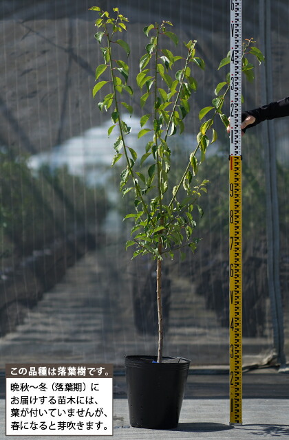 ポット含め高さ1.3m~1.5m前後でビニールポットに仮植してあります。