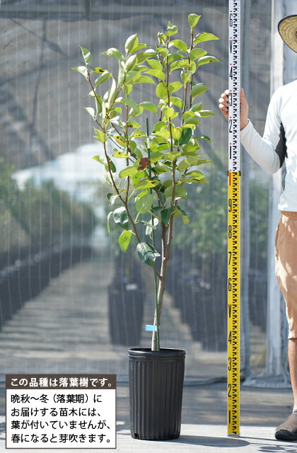 ポット含め高さ1.3m~1.5m前後でビニールポットに仮植してあります。