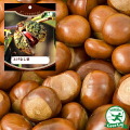 珍しいトゲなし栗です。味や香りも普通の栗と変わらず美味しい栗なので家庭果樹としてもお勧めです。外皮(イガ)にトゲがない珍しい品種で栗拾いが安心してできます。1本では実がなりにくいので品種の違う栗を一緒に植えてください。収穫期は9月~10月頃です。自家不結実性が強いので、受粉樹を混植します。花粉は主に風で運ばれますが、受粉樹の有効範囲は10~20mです。