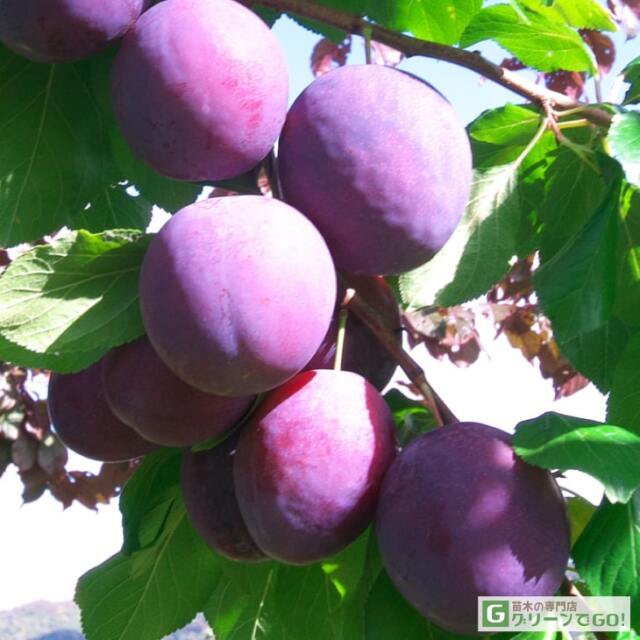 果実は大きいものでは150g程(タマゴ大サイズ)にもなる、とても甘いプルーンです。 しかも、自家結実性があり1本でも成るという、魅力的な特徴を兼ね備えた品種です。