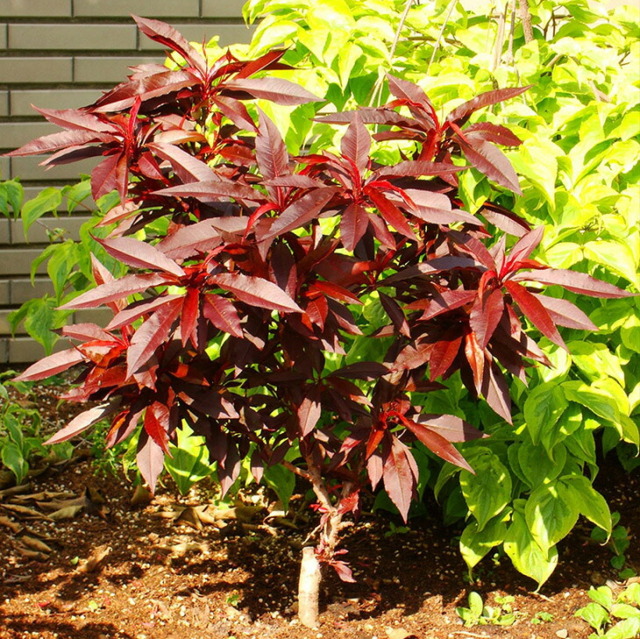 春の新芽は赤紫色(ワインレッド・濃いバーガンディ色)の美しいカラーリーフ。
