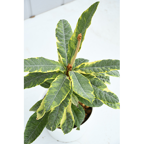 斑入りビワは、常緑で耐寒性があり、自家結実性を持つ育てやすい植物です。鉢植え・地植えどちらでも