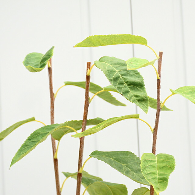 ジューンベリーはバラ科ザイフリボク属の種類を指す通称で、暑さ寒さに強く育てやすい落葉樹 です。4~5月に白い花を咲かせ、5月中頃から実を付け始め6月頃に収穫できます。秋には紅葉も楽しめ、樹形も美しいことから近年大注目されている花木の一つです。バレリーナは花が白く、明るいレッドから紫黒の実が楽しめます。甘みがあっておいしい品種です。秋には美しく紅葉します。場所をとらないほうき性の枝ぶりとなります。