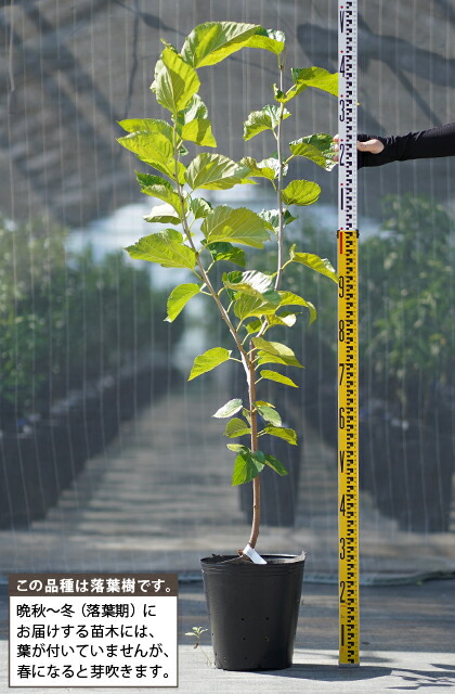 ポット含め高さ1.3m~1.5m前後でビニールポットに仮植してあります。
